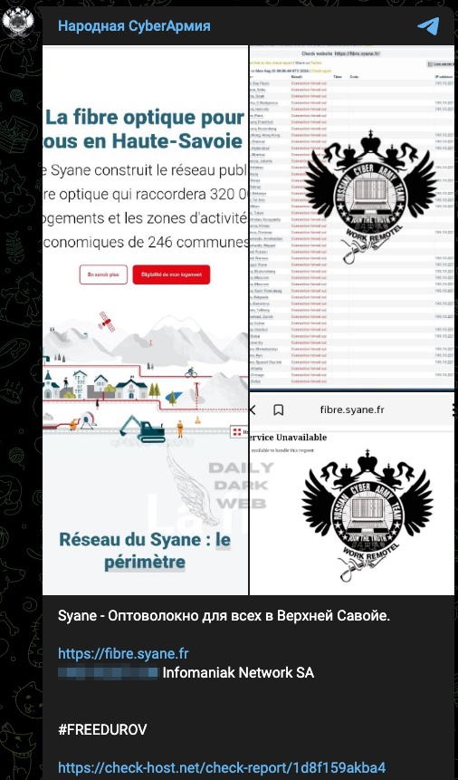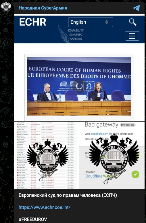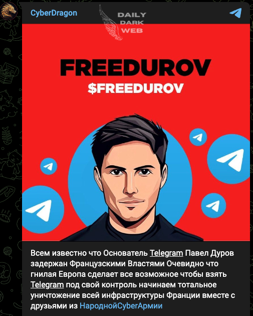 The Cyber Army of Russia has a history of launching attacks in response to geopolitical events, and Durov’s arrest appears to have galvanized their efforts. The group's campaign, branded as #FreeDurov, has gained traction across various dark web forums, with many hackers pledging their support.