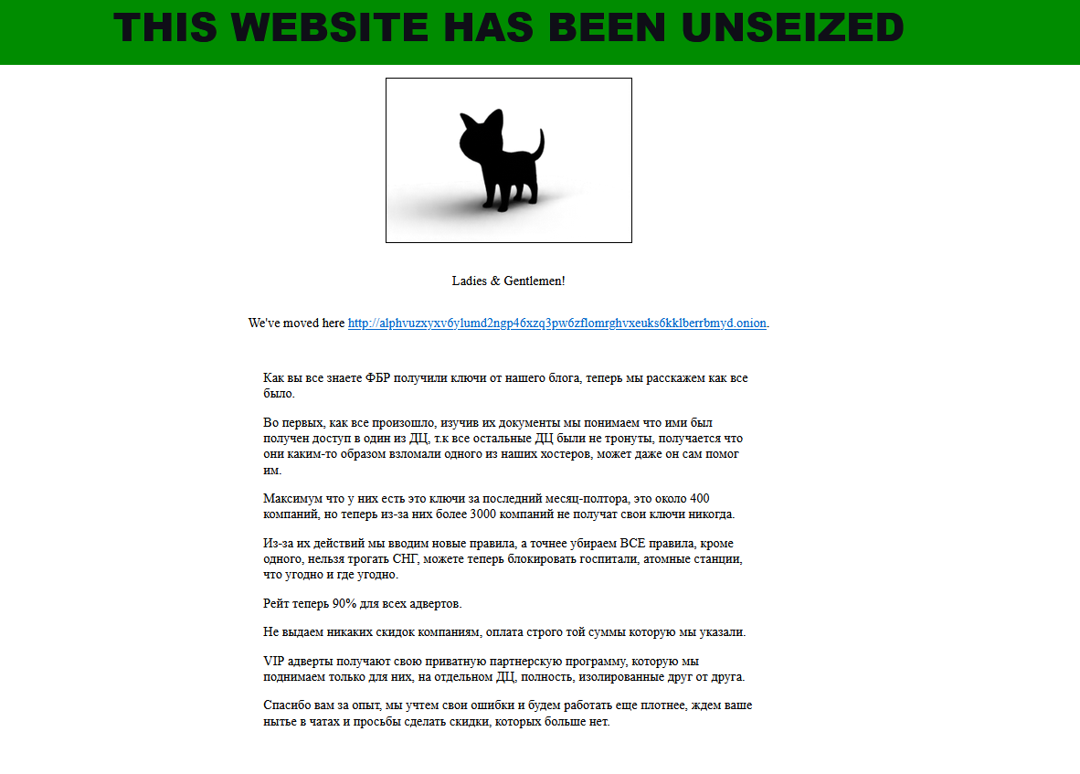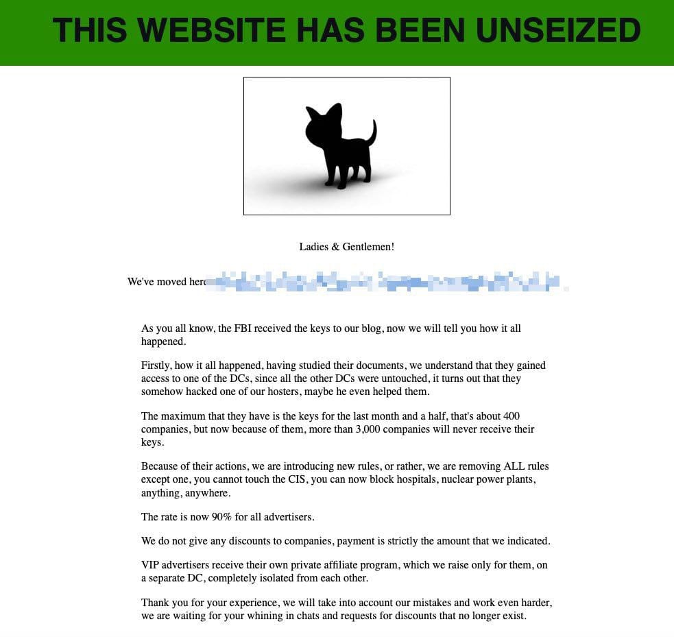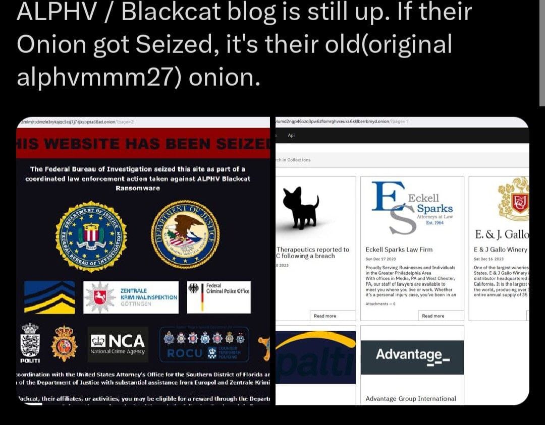 December 19th, 14:44 EDT - Apparently the site has been seized against after ALPHV/Blackcat took it back over at 12:34 pm EDT