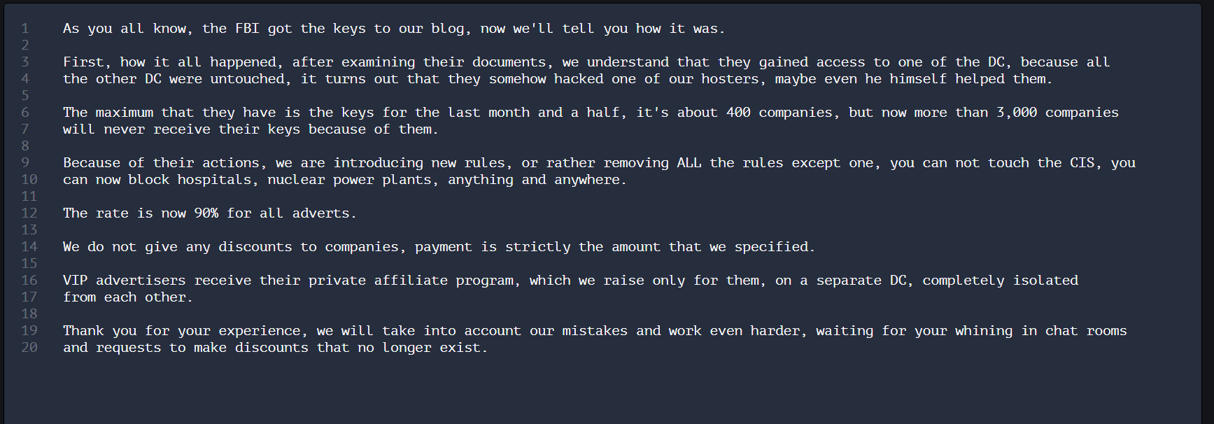 - December 19th, 2023, 7:42AM EST: ALPHV states this is the old domain and it doesn't matter