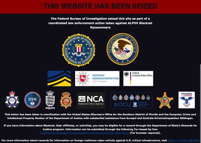 - December 19th, 2023, 7:26AM EST: ALPHV domain seized