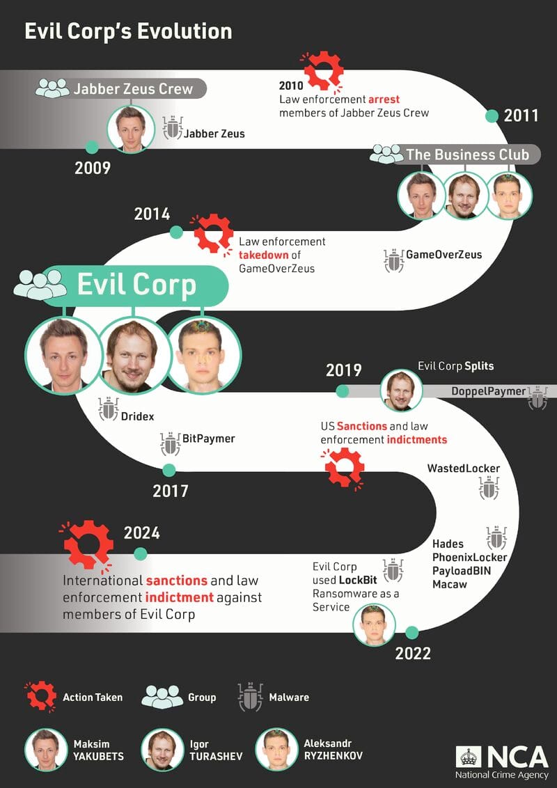 - Sanctions against Ryzhenkov and other Evil Corp members in the UK, US, and Australia in 2024.