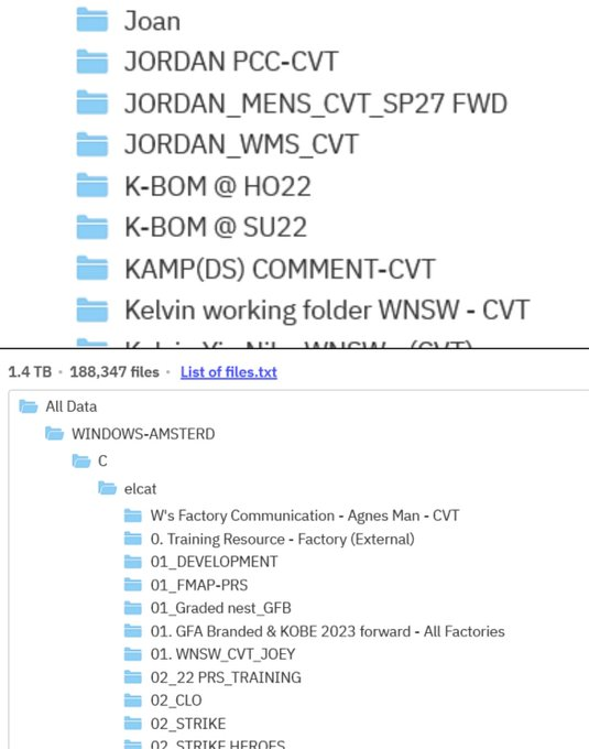 Directory names visible in the leaked samples include "Women's Sportswear," "Men's Sportswear," and various product development categories—suggesting the attackers gained deep access to Nike's product creation systems rather than customer-facing infrastructure.