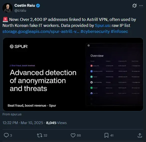 All connections consistently routed through Astrill VPN, a service repeatedly linked to previous Lazarus infrastructure in open-source intelligence reporting.