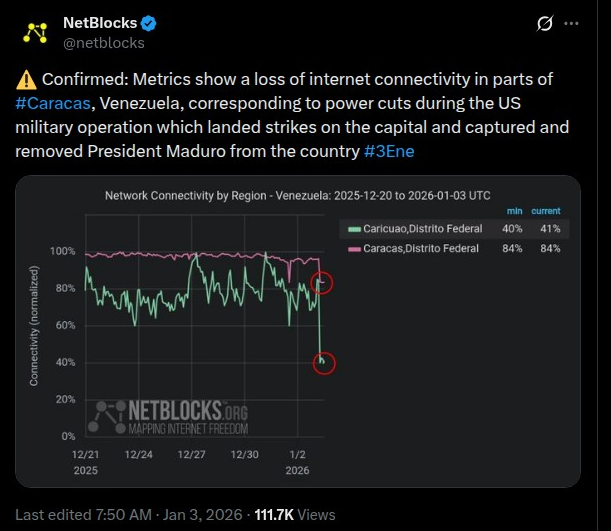 — NetBlocks (@netblocks) January 3, 2026