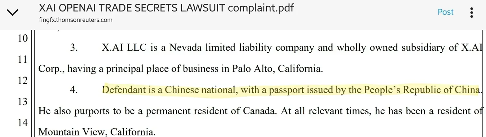 - Full Scope of Theft: xAI alleges Li "withheld accounts and credentials from forensic investigators," suggesting the full extent of the theft may not yet be known