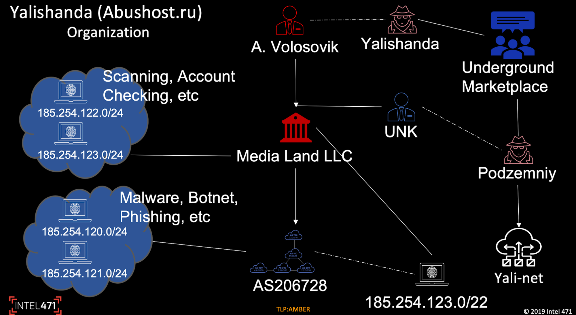 At a 2017 Black Hat security conference, researchers from Cisco and Intel 471 labeled Yalishanda as one of the "top tier" bulletproof hosting providers worldwide. In just one 90-day period that year, his infrastructure hosted sites tied to advanced malware including Dridex and Zeus banking trojans, along with numerous ransomware operations. Jason Passwaters, Intel 471's COO, noted: "Bulletproof hosting is probably the biggest enabling service that you find in the underground. If there's any one group operation or actor that touches more cybercriminals, it's the bulletproof hosters."