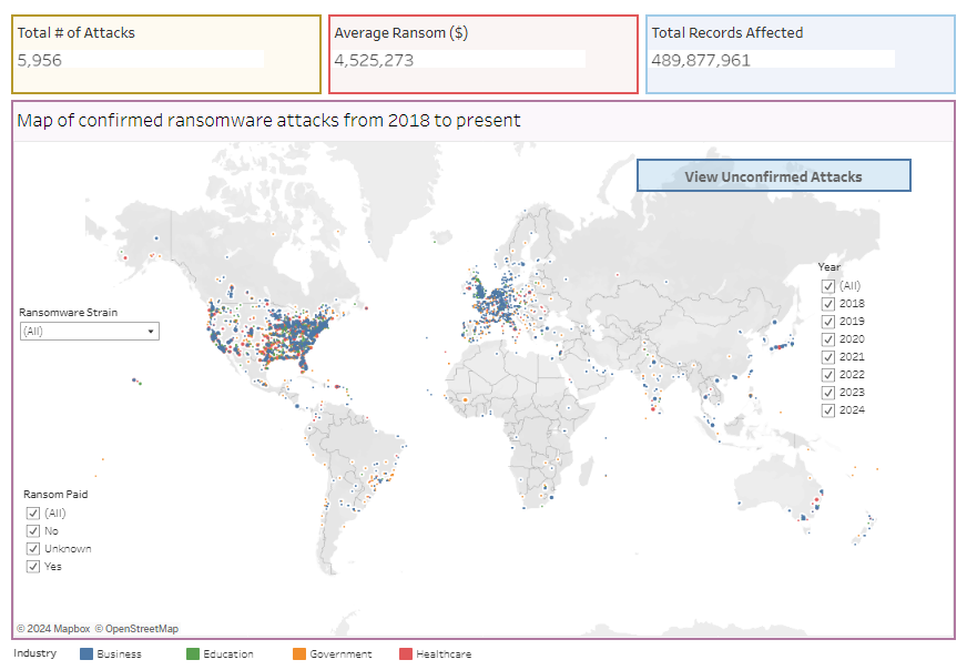| Year | Date | Company Name | Industry | Sub-Industry | City | Country | Records Affected | Ransom Paid | Ransom Amount | Ransomware Strain |